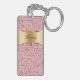 Porte - clé de monogramme avec le joli emblème imprimé de monogramme d'or que vous pouvez personnaliser avec n'importe quel nom, les initiales, ou le message et le bijou rose imprimé de diamant bling, avec l'arrière - plan rose imprimé de parties scintillantes vous pouvez employer comme cadeau ou cadeau. Conçu comme porte - clés pour des femmes ou porte - clés pour des filles, dans une conception acrylique bilatérale d'amusement qui vous laisse porter vos clés dans le style.