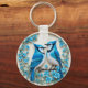 Oeuvre représentant une paire de baies bleues perchées sur une branche entourée de fleurs bleues frappantes, symbolisant la beauté et l'harmonie de la nature. Détaillé et coloré, idéal pour la décoration et les inspirations.