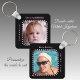 Porte - clé double face, idée cadeau de clé. Remplacez les deux photos / avant et arrière et ajoutez un nom. Arrière - plan noir, texte rose avec coeur d'amour.