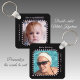 Porte-clés Double face 2 photos nom noir violet