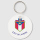 Porte - clé avec le drapeau d'Austin, Texas. Un drapeau blanc avec les armoiries de la ville au centre