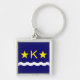 Porte - clé carré avec design avec drapeau de Kinshasa, capitale de la République Démocratique du Congo, drapeau bleu avec vague blanche, deux étoiles dorées et lettre "K" au centre