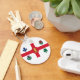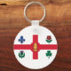 Porte - clé avec le drapeau de Montréal, la ville la plus peuplée de la province de Québec, Canada. Drapeau blanc avec croix rouge, pin blanc, fleur de lys bleu, rose rouge de Lancaster, shamrock et chardon