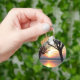 Un coucher de soleil sur le lac, où le soleil orange se reflète, est visible sur cette porte-clés.