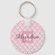 Cette belle porte - clé présente un motif damassé blanc classique sur un rose poussiéreux ou un arrière - plan rose. Le design est personnalisé avec une lettre initiale monogramme ainsi qu'un nom personnalisable pour un look simple mais élégant. Un cadeau parfait pour toute femme qui veut un porte - clé personnalisé.
