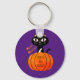 Porte-clés Éffrayant chat violet noir orange Citrouille Hallo