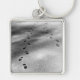 Une poussière de neige fraîche recouvre une allée noire avec des densités variables. Deux séries d'empreintes de démarrage noir commencent côte à côte en haut de l'image et divergent en approchant le spectateur dans cette photo verticale, noir et blanc. Un ensemble de pistes se dirige vers le coin inférieur gauche tandis que l'autre ensemble de traces se retire à mi-chemin du côté droit du cadre. Photographie numérique, noir et blanc. Copyright © 2010 Claire E. Skinner. Tous droits réservés.