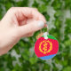Drapeau de l'Érythrée. L'actuel drapeau de l'État d'Érythrée a été adopté le 5 décembre 1995 et utilise la disposition de base du drapeau du Front de libération populaire de l'Érythrée, avec la couronne avec branche d'olivier droite dérivé du drapeau de 1952. Le drapeau est dominé par un triangle rouge qui s'étend du treuil à la mouche avec des triangles verts et bleus complémentaires au-dessus et au-dessous. Le vert représente respectivement la fertilité du pays pour l'agriculture ; le bleu représente la mer (la mer rouge) ; et le rouge le sang perdu dans la lutte pour la liberté. Dans le triangle rouge, un symbole de couronne jaune avec 14 feuilles de chaque côté dérivé du drapeau de 1952 remplace l'étoile jaune du drapeau EPLF.