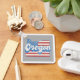Bouton épingle carré élégant caractéristiques de l'état de la silhouette Oregon avec étoiles patriotiques et rayures remplir sur papier Kraft gris arrière - plan, et le texte de style rétro. Ajoutez votre propre message ou monogramme au dos.