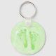 Un porte - clé parent fier avec de jolies empreintes vertes contre un arrière - plan vert pastel doux. Personnalisez en ajoutant le nom de votre bébé au texte personnalisable qui dit : Parent fier. Parfait pour un baby shower.