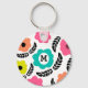 Motif moderne et audacieux aux couleurs d'été avec décoration en feuilles noires sur porte - clé personnalisé.