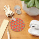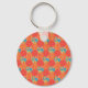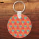 Un Porte - clé avec un joli fob, avec un motif de style rustique imbriqué d'hexagones de fleurs d'orange foncé, de rayures rouges, jaunes et oranges et de Pois blancs sur un arrière - plan orange. Coordonnées avec la gamme Orange Fizz.