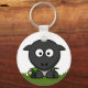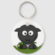 Cartoon ronde mouton avec fleur dans sa bouche sur bouton amusant porte - clé pour les enfants (ou les enfants à coeur)