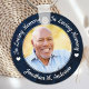 Honore ton bien-aimé avec un porte - clé funéraire commémoratif personnalisé. Ce porte - clé funéraire de souvenir unique est le cadeau idéal pour vous, votre famille ou vos amis pour rendre hommage à votre être aimé. Nous espérons que votre bouton commémoratif vous apportera paix, joie et bons souvenirs. Citation "In Loving Memory". Customisez avec la photo préférée, et le nom. Parfait pour célébrer des événements de la vie et des services commémoratifs. DROIT D'AUTEUR © 2020 Judy Burrows, Black Dog Art - Tous droits réservés. Funérailles Marbre Bleu Amour Mémoire Photo porte - clé commémoratif