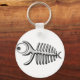 Classic Button Keychain with the funny image of a fishbone with aiming look and wide open mouth.