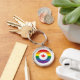 Cette oeuvre colorée présente un cercle arc-en-ciel avec une feuille d'érable canadienne.