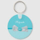 Ajoutez une touche de charme champêtre à votre style personnel avec cette aqua girly et biais blanc en vichy porte - clé motif avec un joli arc blanc transparent décoré de jolies perles et un ruban de rosette bleu clair. Ce design bleu clair féminin peut être personnalisé en ajoutant votre nom. Image imprimée plate, pas le ruban réel.