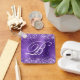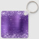 Elégante parties scintillant violette avec étincelles contre un faux améthyste brossé feuille de métal image graphique. Le chic monogramme de calligraphie blanc au centre peut être customisé. Tous les éléments brillants et brillants de ce design girly moderne sont des graphismes numériques. Une précieuse fête de porte - clé monogrammée favorise sa fête d'anniversaire spéciale.