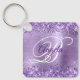 Elégante parties scintillant violette avec étincelles contre une image graphique en feuille de métal brossé violet clair. On peut customiser le chic monogramme de calligraphie royale violet et blanc au centre. Tous les éléments brillants et brillants de ce design girly moderne sont des graphismes numériques. Une précieuse fête de porte - clé monogrammée favorise sa fête d'anniversaire spéciale.