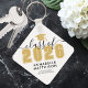 Classe de 2025 Bold Elegant Black and Gold Graduation Keepsaké Porte - clé Célébrez cette étape spéciale avec un porte - clé élégant et personnalisé conçu pour le diplômé. Avec "Class of 2025" (ou n'importe quelle année) en caractères gras, l'icône de l'année et de la casquette de graduation sont mis en surbrillance dans un or jaune riche pour un contraste saisissant, tandis que tous les autres textes restent noir classique. En bas, il y a un espace personnalisable pour le nom de l’école du diplômé, ce qui en fait un gardien unique et significatif. Un simple cadre noir borde les bords pour un look poli et intemporel. Parfait comme un cadeau réfléchi ou un souvenir personnel, ce porte - clé est un excellent moyen de commémorer leur réalisation. Entièrement personnalisables, les couleurs peuvent être ajustées pour correspondre aux couleurs de l’école ou aux teintes préférées des diplômés, ce qui en fait un accessoire spécial et mémorable pour leur grand jour.