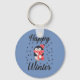 Illustration de mignon pingouin, flocons de neige et texte : Happy Winter.
