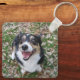 Ce magnifique porte - clé de mémorial photo pour chien personnalisé est personnalisé avec des photos adorables et des souvenirs de votre chiot sucré. Customisez ce cadeau de condoléances réfléchi avec vos propres photos d'animaux de compagnie personnalisées autour d'un carré noir avec un joli empreinte de patte blanc et le nom de votre chien dans le centre pour express votre sympathie. Un cadeau de souvenir classe pour quelqu'un qui a perdu son chien bien-aimé.