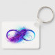 Symbole d'infini avec une belle plume peinte en violet et bleu couleurs vives sur l'arrière - plan blanc.