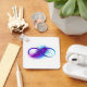Symbole d'infini avec une belle plume peinte en violet et bleu couleurs vives sur l'arrière - plan blanc.