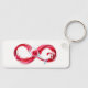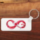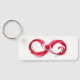 Infinity symbole of continuous stream of red pouring into glass glass glass on white background.