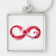 Infinity symbole of continuous stream of red pouring into glass glass glass on white background.