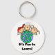Three stick figure kids surround a world globe and text reads "It's Fun to Learn !" on school themed T-shirts, cards, mugs, stickers, buttons, and other gear !