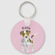 Ce charmant porte - clé personnalisé, zip pull, présente mon dessin d'un mignon chiot Jack Russell terrier contre un arrière - plan rose. Le Jack Russell est blanc avec des taches brunes et un visage brun et blanc avec de grands yeux attrayants. Le nom sur le porte - clé est modifiable. Un joli accessoire et cadeau.
