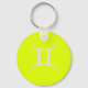 Porte - clé ronde avec fluorescent jaune uni couleur arrière - plan et gris clair symbole du zodiaque Gemini.Design simple et tendance par Alma Wad. ____________ Le jaune est associé au signe de Gemini dans l'astrologie occidentale. Vous pouvez tenir compte de cela lors du choix de votre couleur.