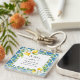 La Dolce Vita porte - clé de week-end bachelorette méditerranéenne. Fêtez votre week-end de bachelorette méditerranéenne avec ces porte - clés personnalisés, conçus pour capturer l'esprit de "La Dolce Vita". Personnalisez chaque porte - clé avec vos détails. Le design se caractérise par une frontière carrelée bleu et jaune vif qui rappelle les côtes méditerranéennes. Des branches bien placées, éclatant de citrons et de fleurs jaune vif, encadrent les coins supérieur gauche et inférieur droit, ajoutant une touche de fantaisie élégant. Cette combinaison de citrons et de fleurs incarne parfaitement la chaleur et la fraîcheur citronnée de la "vie douce".