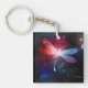 Lumineuse, volante, libellule rouge, avec des ailes transparentes et détaillées sur arrière - plan sombre, nocturne, lumineux avec plantes tropicaux et lucioles. libellule rouge.