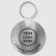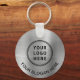 Porte - clé promotionnel pour votre entreprise ou organisation avec un faux arrière - plan métallique en argent brossé. Ajoutez votre logo, votre code QR et deux lignes de texte, comme votre nom d'entreprise, votre slogan, merci, ou laissez vide.