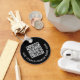 Porte - clé noir promotionnel moderne pour votre entreprise ou organisation. Téléchargez votre logo, créez facilement un code QR numérisable lié à votre site Web, et ajoutez deux lignes de texte blanc, comme votre nom d'entreprise, votre slogan, merci, ou laissez vide.