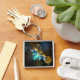 Luciole à vapeur avec ailes bleues transparentes et ampoule verte sur arrière - plan usé, marron, texturé. Style Steampunk.