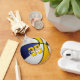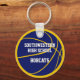 Ce porte - clé cool à thème de basket présente l'image réaliste d'un basket-ball qui a alternativement des panneaux bleus, blancs et or recolorés sur le devant et une simple forme de basket-ball bleu sur le dos - personnalisez facilement avec le nom du joueur et le numéro de maillot sur le devant et le nom de l'école ou du club et le nom de la mascotte sur le dos - par katz_d_zynes