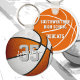 Ce porte - clé cool à thème de basket présente l'image réaliste d'un basket qui a alternativement des panneaux recolorés orange et blanc sur le devant et une simple forme bleue de basket sur le dos - personnalisez facilement avec le nom du joueur et le numéro de maillot sur le devant et le nom de l'école ou du club et le nom de la mascotte sur le dos - par katz_d_zynes