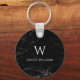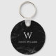 Porte-clés Marbre Noir Monogramme Moderne Nom Initial Blanc