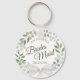 Ces porte - clés sont conçus pour donner comme faveurs aux serveuses d'honneur à votre mariage. Elles présentent une aquarelle rustique peinte à la main avec une couronne de feuilles d'eucalyptus et un feuillage dans les tons menthe, mousse et vert sauge. Le texte est écrit en lettres de script élégantes, et il y a place pour son nom et la date mariage. Une façon parfaite de remercier vos demoiselles d'honneur d'avoir fait partie de votre journée spéciale !