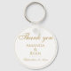 Porte - clé de Merci Mariage or simple et élégant. Cet élégant porte - clé est une grande faveur de mariage pour vos invités. Arrière - plan blanc avec texte dans un script or moderne. Vous pouvez facilement customiser tout le texte - le personnaliser avec le nom de la mariée, le nom du marié, la date du mariage et d'autres textes.