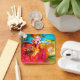 Coloré, fantaisiste et vibrant caractère de mascarade vénitienne. Belle femme blonde sophistiquée est assise avec une rose rouge et un masque à plumes à la main avec des tissus fuchsia or brillant d'un costume de boule masqué baroque avec des plumes et un chien. Aquarelle avec couleurs vives en, bleu jaune rose, vert, or étincelant et argent, inspirée des personnages de Comédie d'Art ( Commedia dell' Arte ) , Carnaval de Venise et masques de plumes vénitiennes.Ce design cool et artistique est aussi un beau cadeau pour les occasions spéciales, anniversaires, fêtes, Saint Valentin, Mardi Gras ( Mardi gras ) saison.