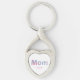 Porte - clé de mère rose moderne en forme de coeur. Le texte de maman est texturé avec un motif en marbre rose, bleu et blanc. Le style de police de nom et la couleur peuvent être customisés à vos détails.