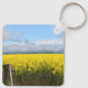 Un champ de fleurs jaune vif s'étend sous un ciel partiellement nuageux, avec des montagnes visibles au loin. Une clôture en bois au premier plan apporte une touche rustique au paysage. Cette image a été prise près d'Ararat à Victoria, en Australie.