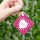 Ce porte - clé est doté d'un arrière - plan rose à coeur blanc et d'un monogramme de prénom et de lettre initiale. Personnalisez les champs de texte avec un prénom ou un nom et une initiale, supprimez un texte ou les deux ou cliquez sur personnaliser pour sélectionner un style, une taille et une couleur de police que vous préférez.