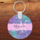 Glam violet, bleu et vert parties scintillant scintille le nom monogramme et le porte - clé initial. Votre nom personnalisé et votre monogramme sont écrits dans un élégant script écrit à la main avec un arrière - plan rose clair. Vous pouvez modifier la couleur du texte, le style et la taille de police à l'aide de l'option personnaliser.