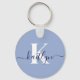 Ce porte - clé bleu simple et élégant avec votre prénom dans une police de script tendance en bleu marine et votre première initiale dans une police de casquette moderne en blanc est parfait pour vos clés. C'est design, tendance et pourtant très classique.