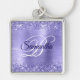 Faux parties scintillant pétillante contre une fausse image graphique en feuille de métal brossé violet bleuté. On peut customiser au centre le monogramme fantaisie de calligraphie blanc et bleu foncé. Tous les éléments scintillants et brillants de ce design girly moderne sont créés avec des graphiques numériques. Un précieux cadeau de porte - clé violet pâle pour son anniversaire.